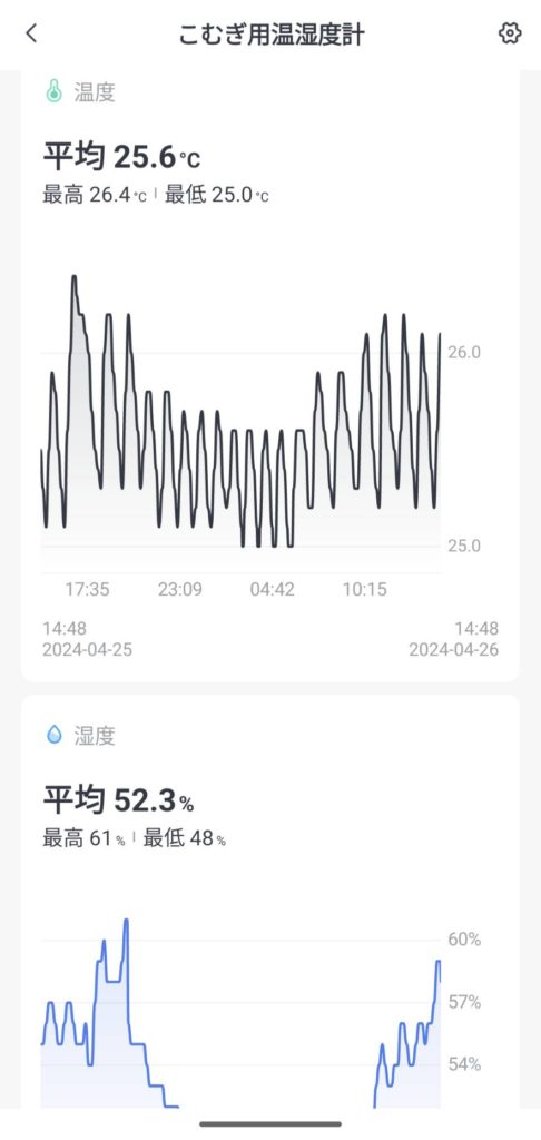きちんと動作しているかは温湿度の記録グラフで確認できます。