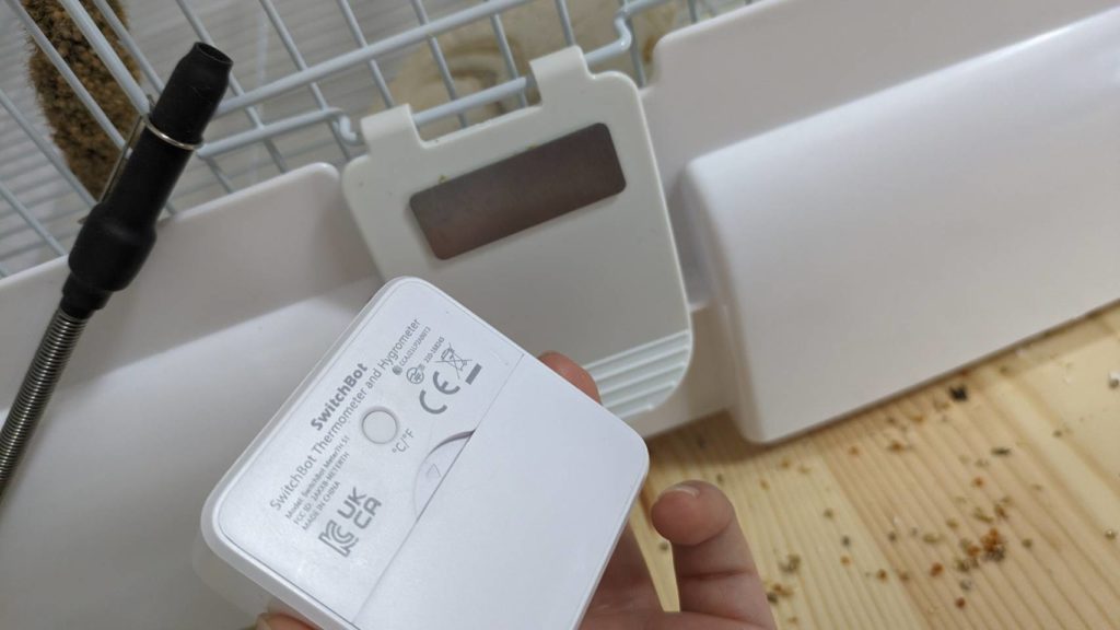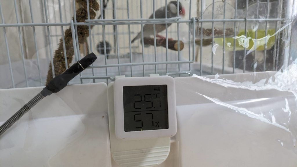 ・文鳥のケージ横に『SwitchBot 温湿度計』を設置